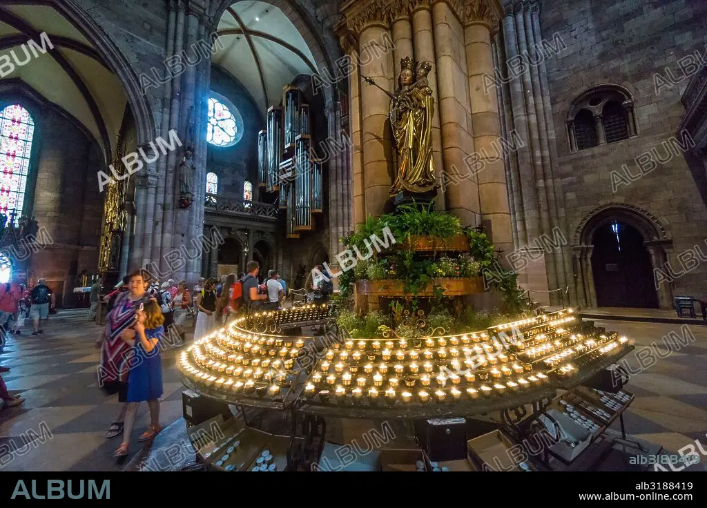 Descripción: velas votivas, Catedral de Friburgo fconstruida en tres etapas, en 1120, la segunda en 1210 y la tercera en 1230, edificio de estilo gótico, Friburgo de Brisgovia, Germany, Europe