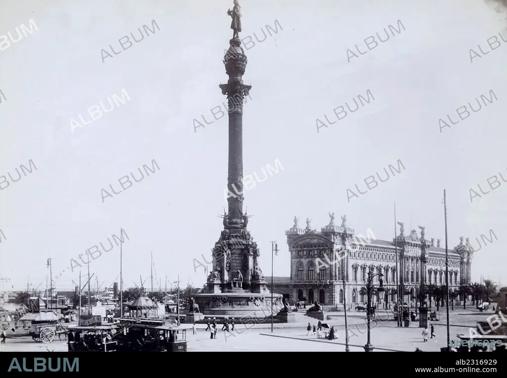 Descripción: Barcelona, Plaza del Portal de la Paz y Monumento a Colón