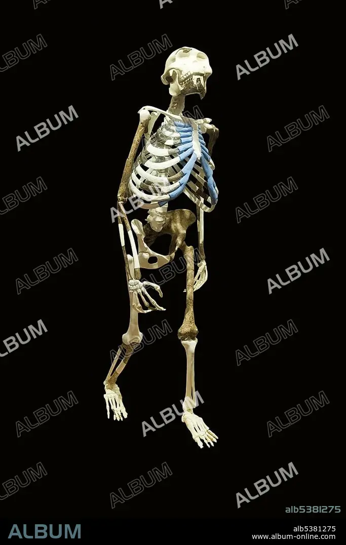 Replica of the skeleton of the Australopithecus afarensis Lucy also known as Dinknesh, Wonderful, Addis Ababa National Museum, Ethiopia, Africa