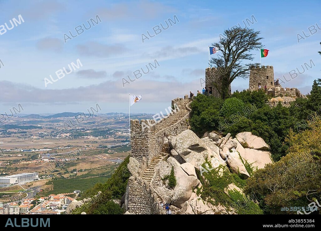 The Moorish Castle, Castle of the Moors, Castelo dos Mouros, Sintra Cascais Natural Park, Grande Lisboa, Lisbon Region, Portugal, Europe.