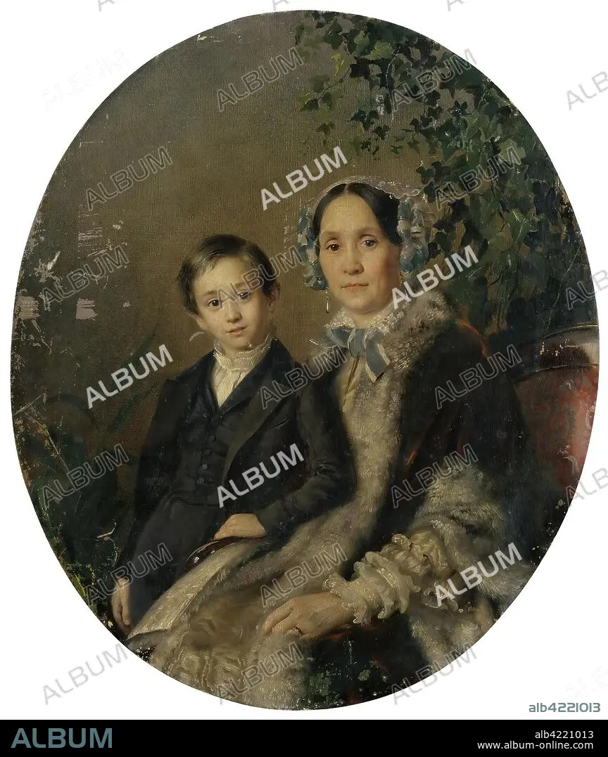 'Portrait of an Unknown Woman with a Boy'. Russia, Second half of 1840s. Dimensions: 56x47 cm.