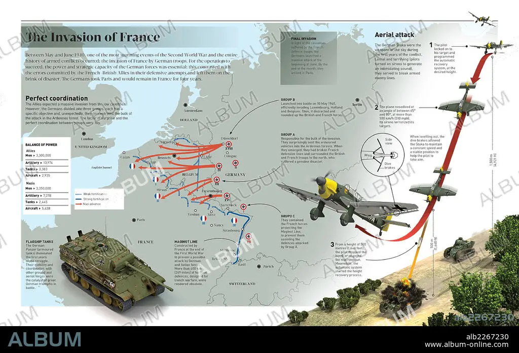 Descripción: Infografía sobre la invasión de Francia por las tropas alemanas, uno de los sucesos más impresionantes de la Segunda Guerra Mundial y de la historia de los conflictos bélicos.