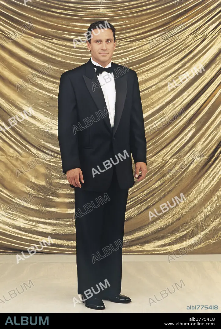 El actor estadounidense Ethan Wayne posa luciendo un elegante esmoquin. 1995