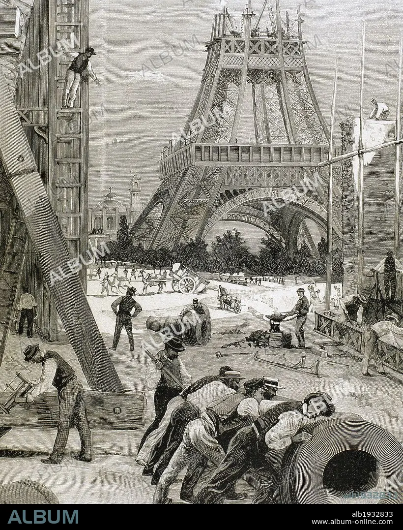 Descripción: HISTORIA DE FRANCIA. S. XIX. Los trabajos de la EXPOSICION UNIVERSAL de París de 1889. CONSTRUCCION DE LA TORRE EIFFEL. París.