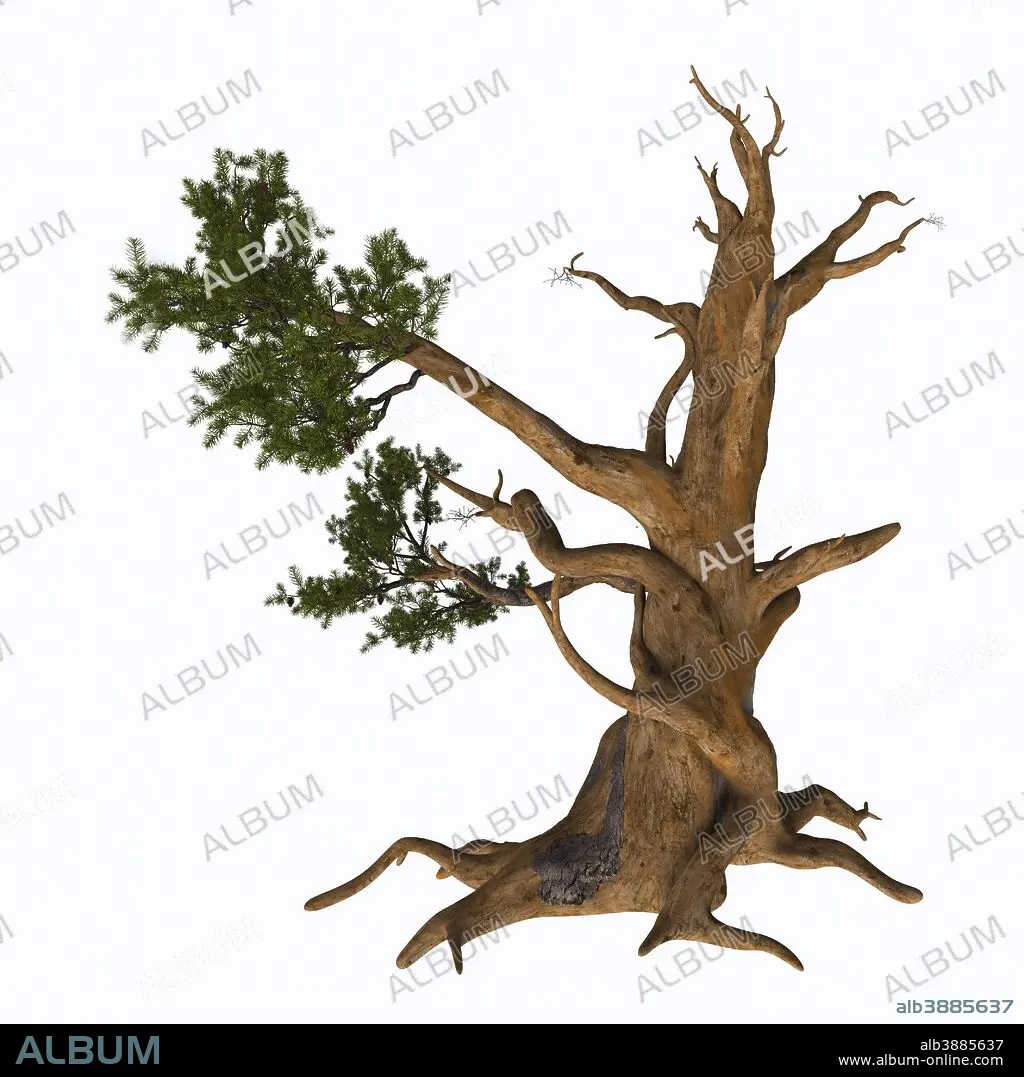 Pinus aristata, the Rocky Mountain bristlecone pine on white background.