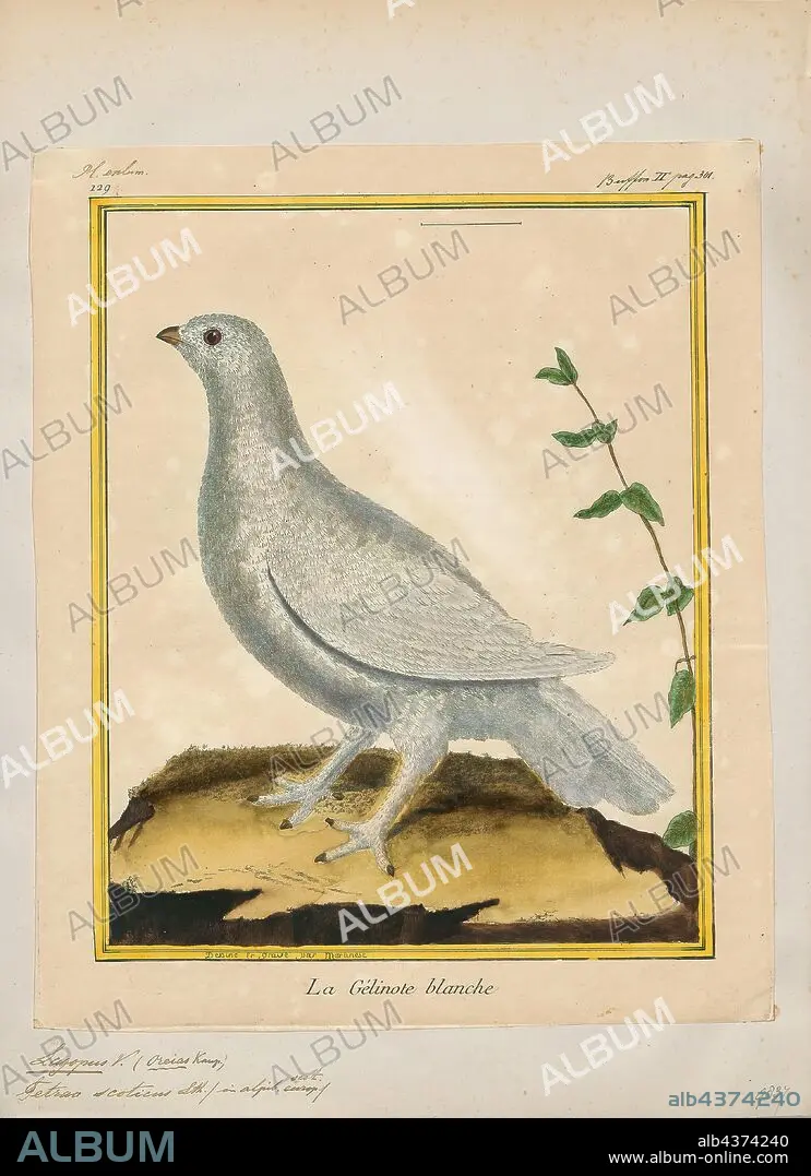 Lagopus mutus, Print, The rock ptarmigan is a medium-sized gamebird in the grouse family. It is known simply as the ptarmigan in the UK and in Canada, where it is the official bird for the territory of Nunavut, Canada, and the official game bird for the province of Newfoundland and Labrador, Canada. In Japan, it is known as the raicho (??), which means "thunder bird". It is the official bird of Gifu, Nagano, and Toyama Prefectures and is a protected species nationwide., 1700-1880