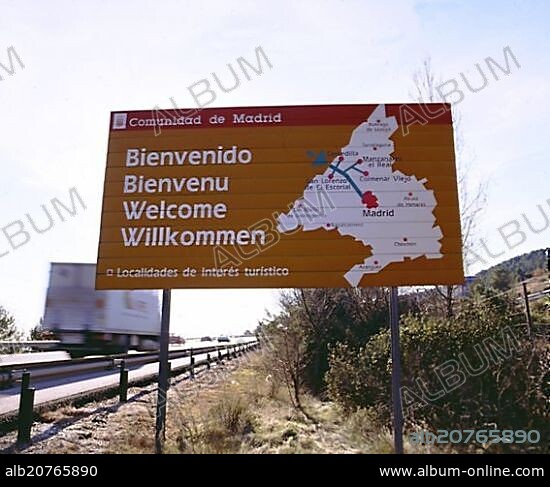 CARTEL DE BIENVENIDA A LA COMUNIDAD DE MADRID EN CUATRO IDIOMAS