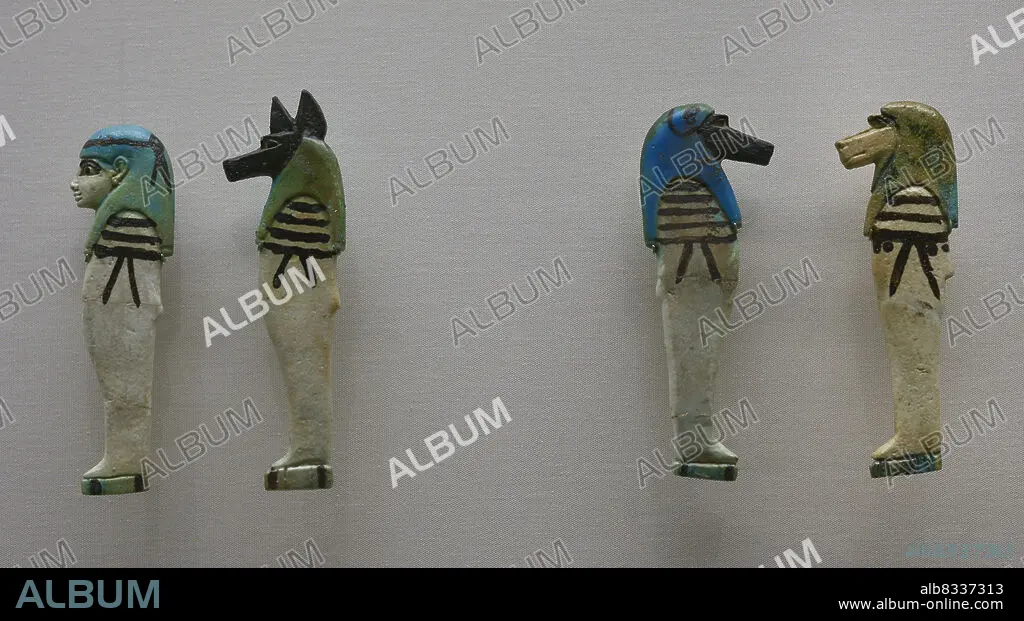 Descripción: Egipto. Hijos del dios Horus. Período Tardío de Egipto. XXVI dinastía. 664-525 A.C. Loza policromada (altura: 13-14 cm). Museo Calouste Gulbenkian. Lisboa. Portugal.