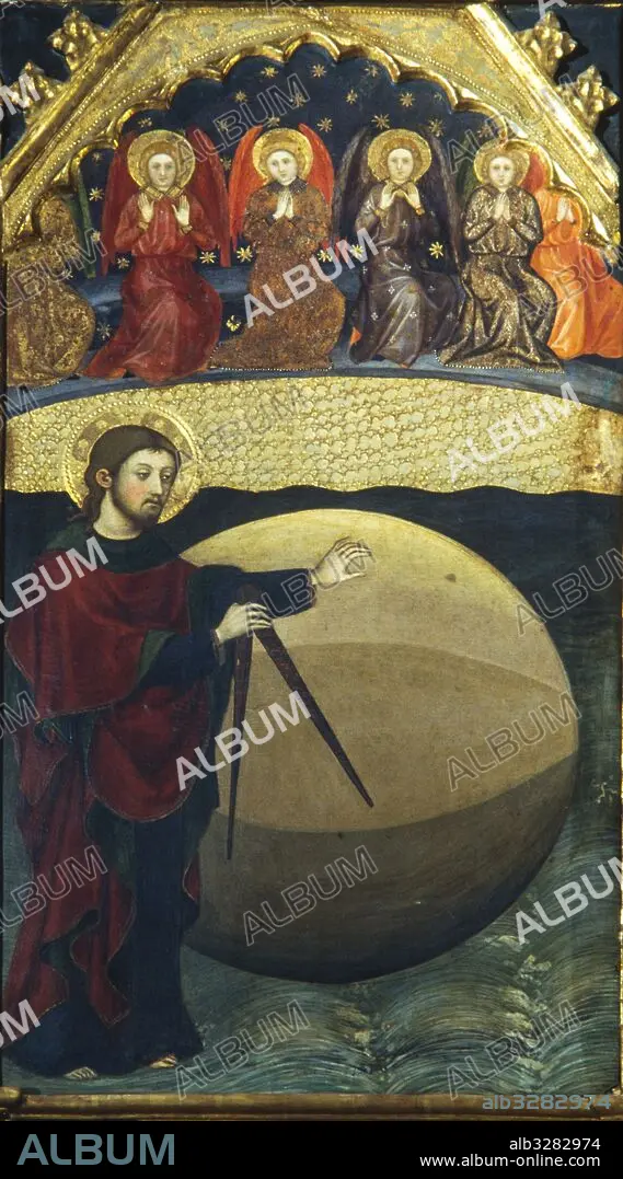 PERE SERRA. Retablo del Espíritu Santo, 1394. La creación. Pintura al temple sobre tabla. 146 x 96 cm. Pintura al temple sobre tabla. Colegiata Basílica de Santa María, Manresa.