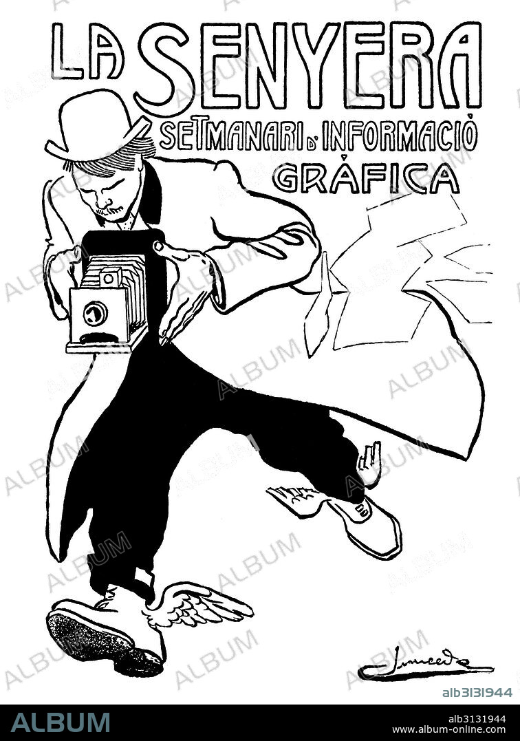 JOAN GARCIA JUNCEDA SUPERVIA. Dibujo para la cabecera de la revista La Senyera, Barcelona, 1907.