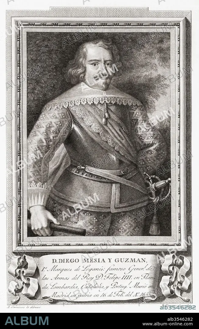 Diego Mexía Felipez de Guzmán y Dávila, 1580–1655. Viscount of Butarque and first Marquis of Leganés. Spanish politician and army commander. After an etching in Retratos de Los Españoles Ilustres, published Madrid, 1791