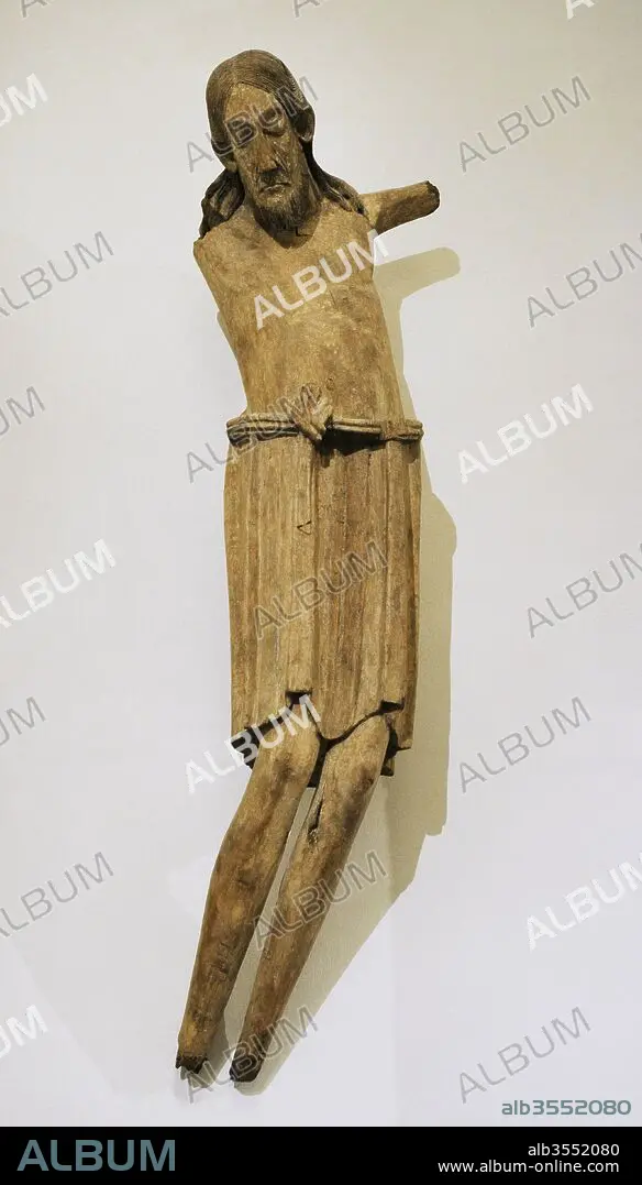 Jesucristo. Restos de la talla perteneciente al crucifijo de la Iglesia de San Jorge en Colonia, Alemania. Ultimo tercio del siglo XI. Madera de sauce. Museo Schnütgen. Colonia, Alemania.
