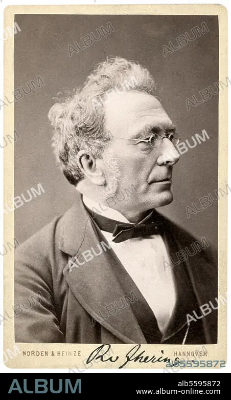 Rudolf von Ihering, lawyer Aurich 22.8.1818 - Göttingen 17.9.1892. Portrait shot, before 1877 (Norden & Heinze). On the reverse handwritten dedication: "His youngest friend Dr. Paul Lindau / R. Ihering / Göttingen, 1 March 1877". Berlin, Sammlung Archiv für Kunst und Geschichte.