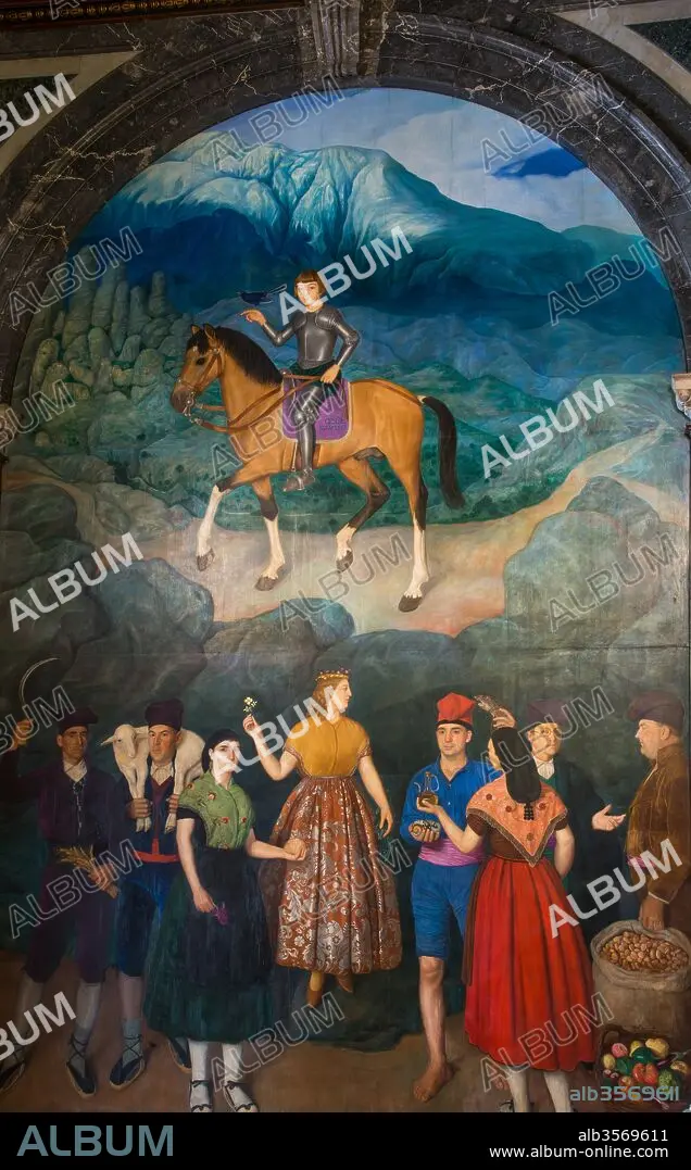 Descripción: Miquel Viladrich / Pintura mural de la Escalera Negra de la Casa de la Ciudad de Barcelona (Ayuntamiento de Barcelona), Siglo XX, Barcelona, Cataluña, España