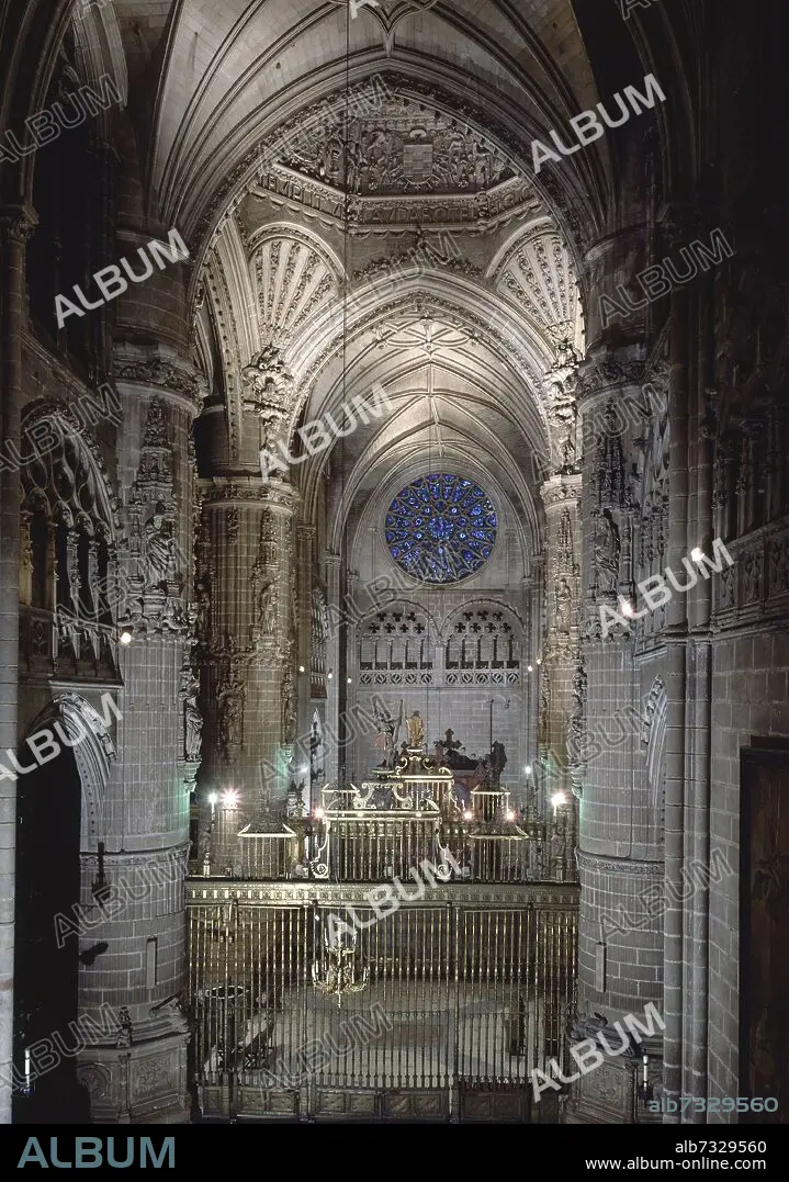 JUAN DE COLONIA (1410-1481). INTERIOR DE LA CATEDRAL - VISTA DEL CRUCERO DESDE LA NAVE CENTRAL - ARQUITECTURA GOTICA ESPAÑOLA.