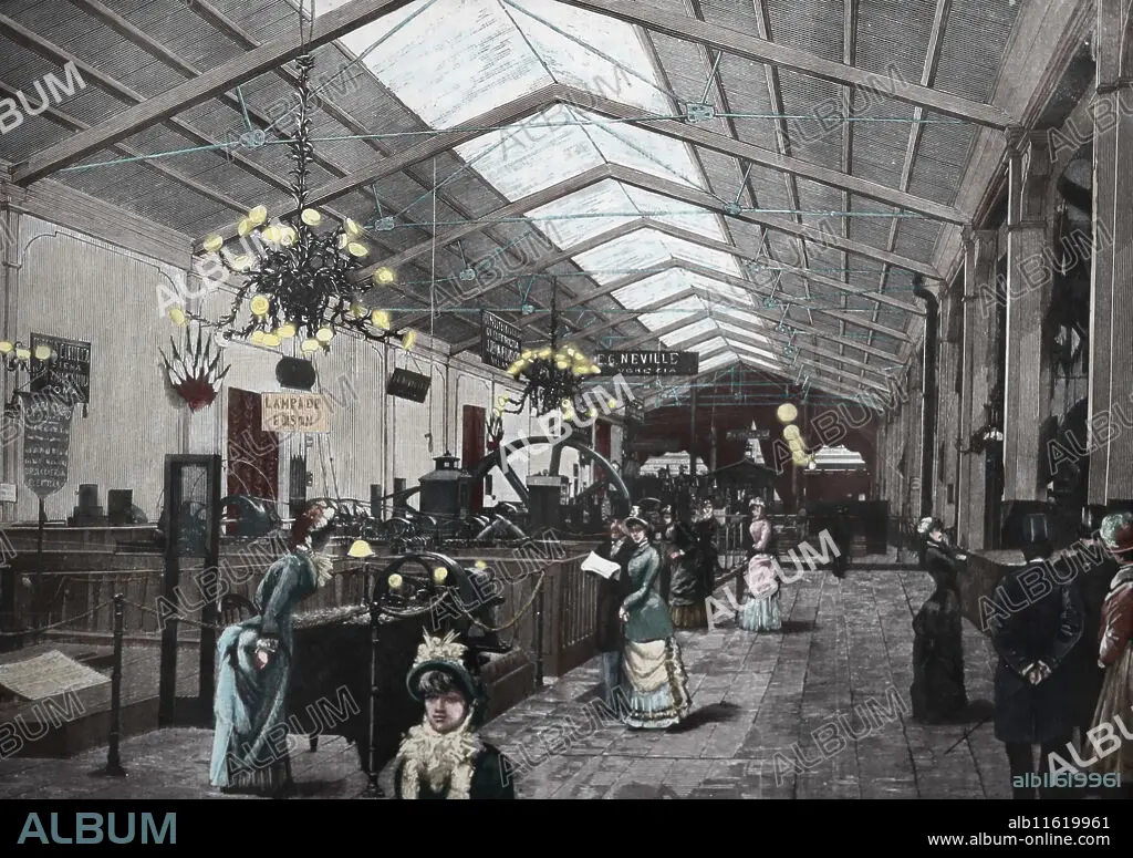 Kingdom of Italy. Expositions, technology, innovation. Electricity gallery at the exposition of Turin, 1884. Italy. Of a photographic reproduction.