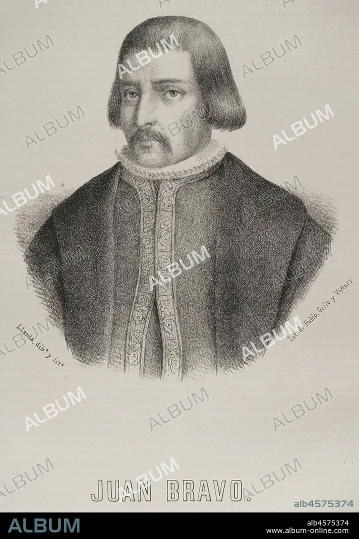 Juan Bravo (1484-1521). Noble castellano. Participó en la Guerra de las Comunidades de Castilla. Dibujo por Llanta. Litografía. Crónica general de España, Historia Ilustrada y Descriptiva de sus Provincias. Castilla-La Vieja,1870. Biblioteca Histórico Militar de Barcelona, Cataluña, España.