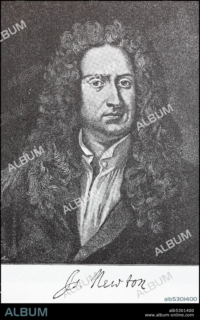 Sir Isaac Newton, 4 January 1643 - 31 March 1727, was an English naturalist and administrative officer. In the language of his time, which did not yet distinguish sharply between natural theology, natural sciences, alchemy and philosophy, Newton was called a philosopher / Sir Isaac Newton, 4. Januar 1643 - 31. März 1727, war ein englischer Naturforscher und Verwaltungsbeamter. In der Sprache seiner Zeit, die zwischen natürlicher Theologie, Naturwissenschaften, Alchemie und Philosophie noch nicht scharf trennte, wurde Newton als Philosoph bezeichnet, Historisch, historical, digital improved reproduction of an original from the 19th century / digitale Reproduktion einer Originalvorlage aus dem 19. Jahrhundert,.