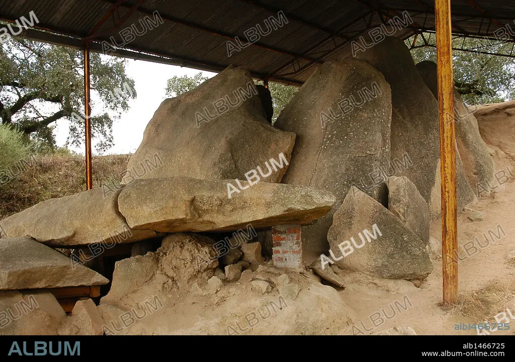Descripción: ARTE PREHISTORICO. NEOLITICO. PORTUGAL. ANTA (DOLMEN) GRANDE DO ZAMBUJEIRO. Fechado entre 4000-3500 a. C, es uno de los mayores monumentos megalíticos de la Península Ibérica. Formado por una cámara poligonal construida a base de siete grandes piedras de 8 m. de altura y un corredor cubierto. La entrada estaba marcada por un gran menhir decorado, actualmente derribado. EVORA. El Alentejo.