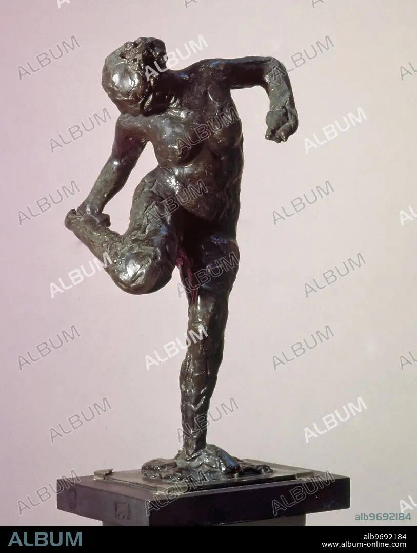 Statue of Dancer Looking at Foot - by Edgar Degas. Tel Aviv Museum, Israel. Edgar Degas (July 19, 1834 - September 27, 1917) was a French painter and sculptor. Born Hilaire Germain Edgar Degas. ©Topham