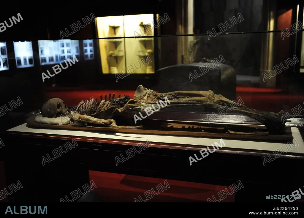 Descripción: Momia del rey fenicio Tabnit, rey de Sidón (Líbano). Hacia el 500 a. C. Encontrada dentro de un sarcófago con los órganos internos momificados. Siglo V a. C. Museo Arqueológico. Estambul. Turquía.