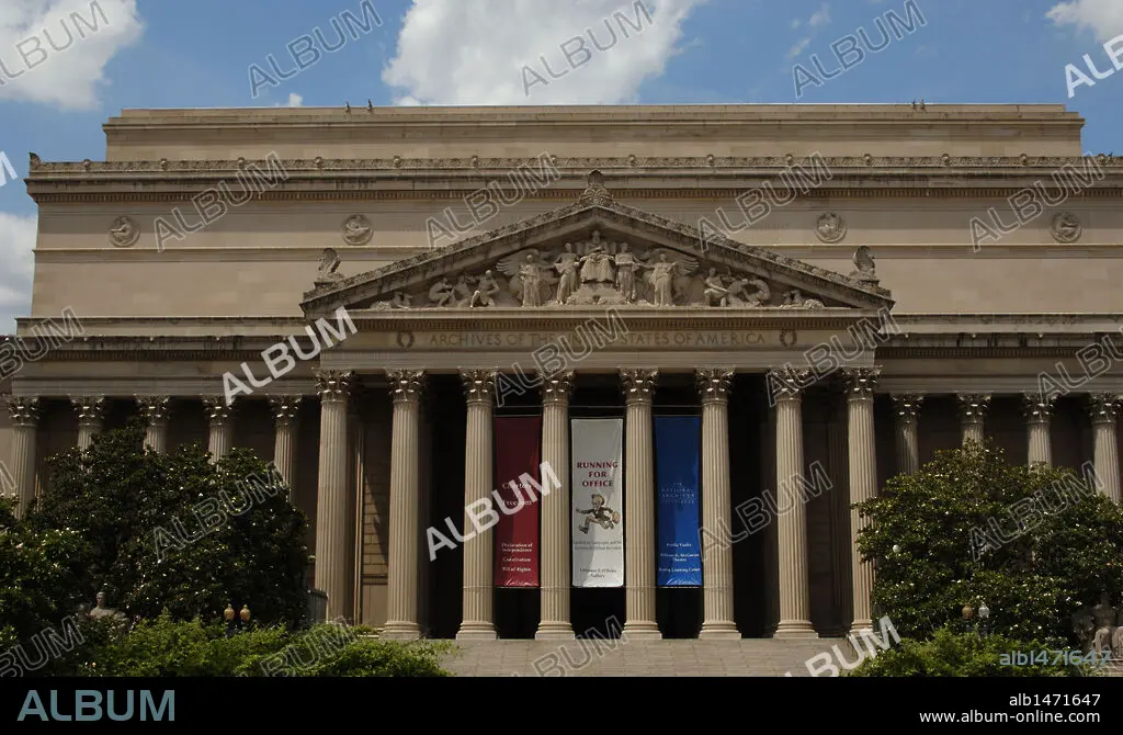 'ARCHIVOS DE LOS ESTADOS UNIDOS DE AMERICA'. En su interior se exponen documentos históricos como la Declaración de Independencia y la Constitución. Exterior. Washington DC. Distrito de Columbia. Estados Unidos.