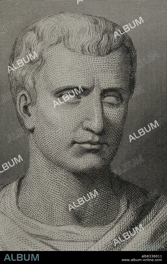 CHARLES GEOFFROY (1819-1882). FRENCH ENGRAVER.. Marco Tulio Cicerón (106 a.C.-43 a.C.). Político, filósofo, escritor y orador romano. Grabado por Geoffroy. Detalle. "Historia Universal", por César Cantú. Tomo VIII. 1858.