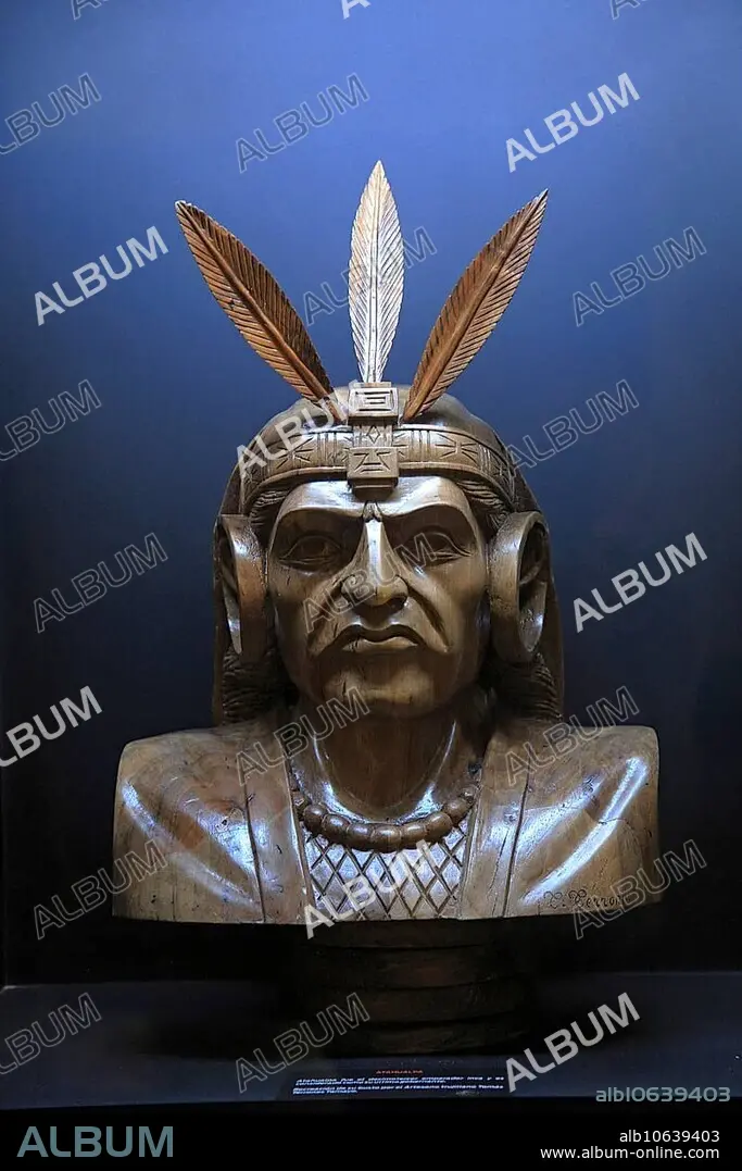 Bust Inca Emperor Atahualpa in exhibition about exploration and conquest of South America, Trujillo, Spain, Europe