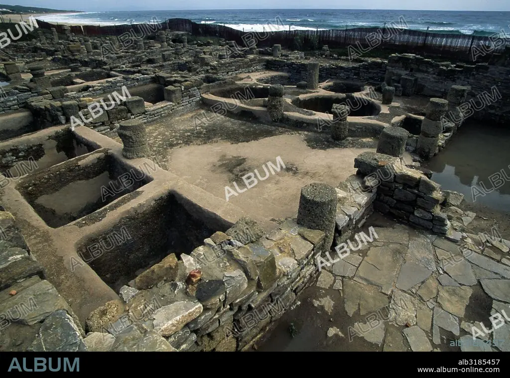 The basins of the salting factory, ancient city of Baelo Claudia, Tarifa, Andalusia, Spain. Roman civilisation, 2nd century BC.
