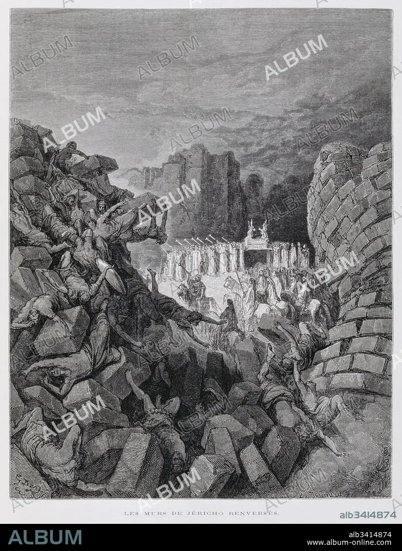 The Walls of Jericho Fall Down (Josh. 5:16, 6:1-10,13-19), Illustration from the Dore Bible 1866. In 1866, the French artist and illustrator Gustave Dore (1832–1883), published a series of 241 wood engravings for a new deluxe edition of the 1843 French translation of the Vulgate Bible, popularly known as the Bible de Tours. This new edition was known as La Grande Bible de Tours and its illustrations were immensely successful.