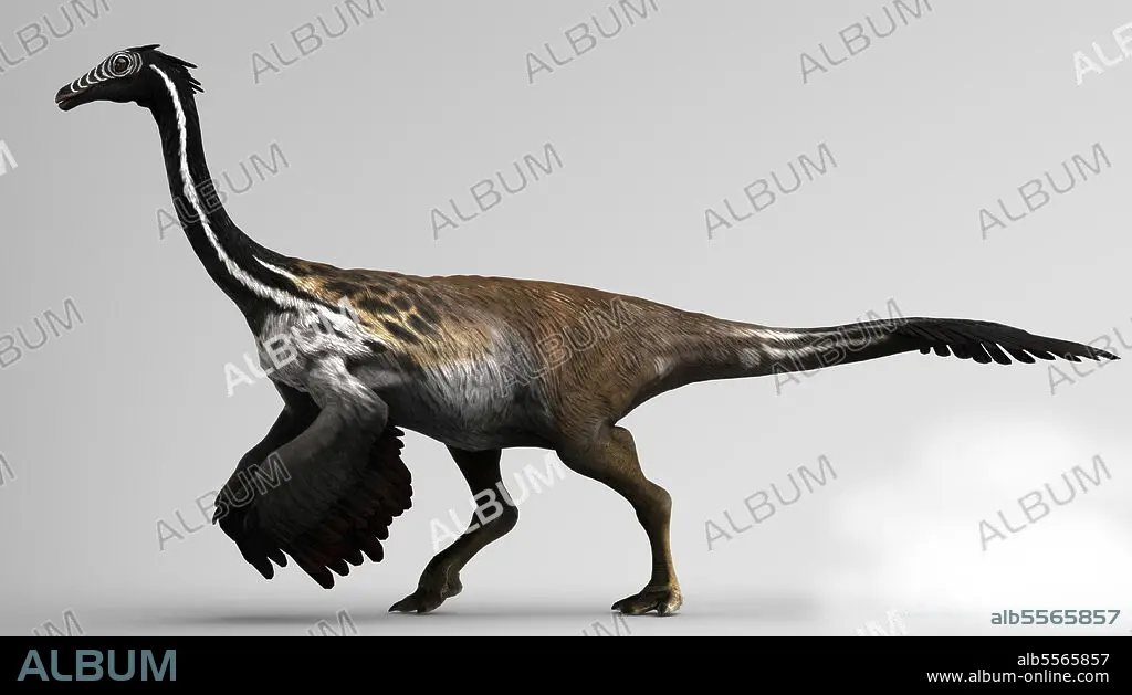 Gallimimus dinosaur on gray background.