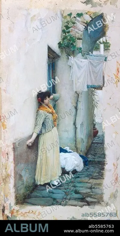 Waterhouse, John William 1849-1917. "Resting". Watercolour heightened with bodycolour, 37 × 18cm. No date. London, Sotheby's. Lot 28, 20/03/79.