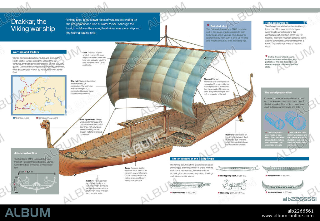 Infografía del drakkar, embarcación utilizada por los vikingos, sus antecedentes y su papel en la expansión vikinga de los siglos VIII y IX.