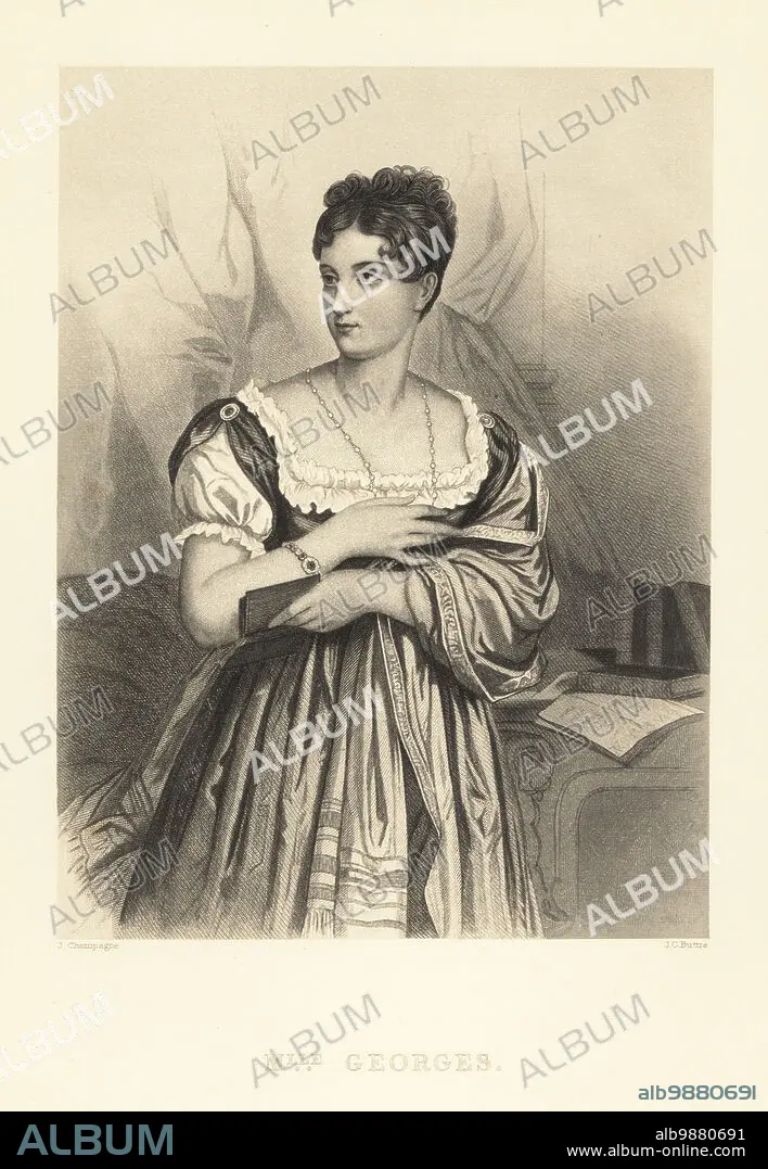 Mlle. Georges, Marguerite Georges, 17871867, French stage actress. Known for her affair with Napoleon, and later with the Duke of Wellington. Steel engraving by J.C. Buttre after a portrait by Jules Champagne from Frank B. Goodrichs The Court of Napoleon or Society under the First Empire, J. B. Lippincott, Philadelphia, 1875.