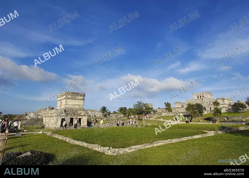 The castle, El Castillo, Mayan ruins of Tulum, 1200-1524, Tulum, Quintana Roo state, Mayan Riviera, Yucatan Peninsula, Mexico, Central America.
