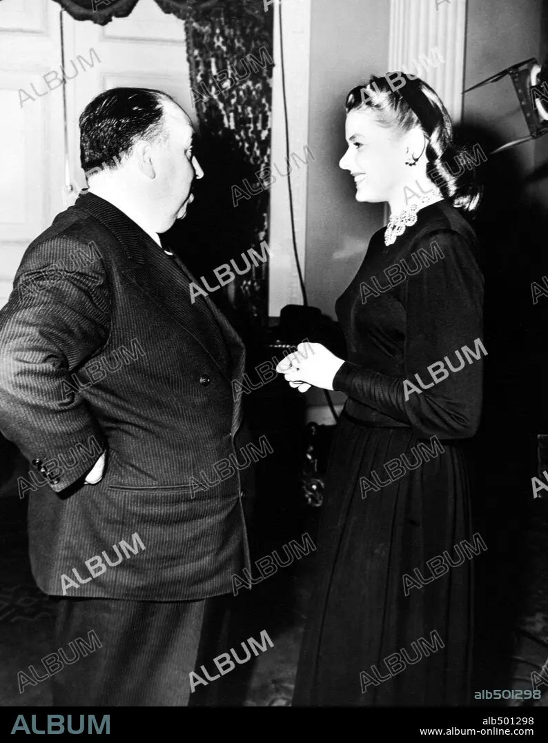 ALFRED HITCHCOCK y INGRID BERGMAN en ENCADENADOS, 1946 (NOTORIOUS), dirigida por ALFRED HITCHCOCK. Copyright RKO RADIO PICTURES.