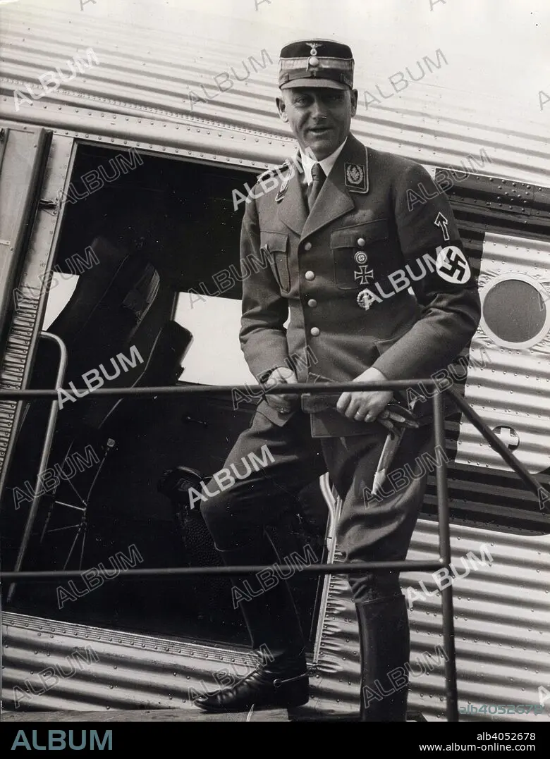 Viktor Lutze, commander of the SA, Berlin Airport, Germany, 1934. Founded in c1919, the Sturmabteilung (SA) was the paramilitary wing of the Nazi party. Its members were known as the 'Brownshirts' because of the colour of their uniforms. The SA played an important part in Hitler's rise to power in Germany but its significance was greatly reduced after its leaders, including Ernst Röhm, were killed in the 'Night of the Long Knives' in 1934, with the rival Schutzstaffel (SS) taking over its role. Lutze (1890-1943) succeeded Röhm as head of the SA. He had been instrumental in bringing about his predecessor's downfall, informing Hitler of his anti-regime plotting.