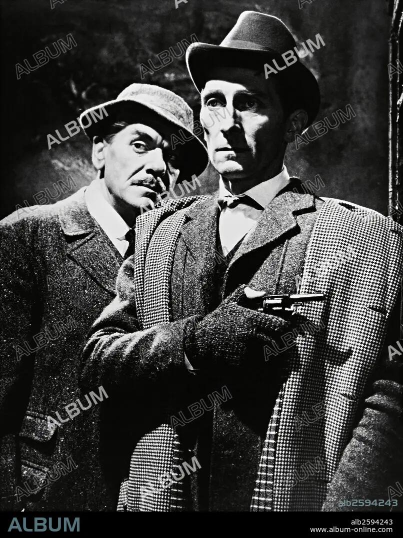 ANDRE MORELL y PETER CUSHING en EL PERRO DE BASKERVILLE, 1959 (THE HOUND OF THE BASKERVILLES), dirigida por TERENCE FISHER. Copyright HAMMER/UNITED ARTISTS.