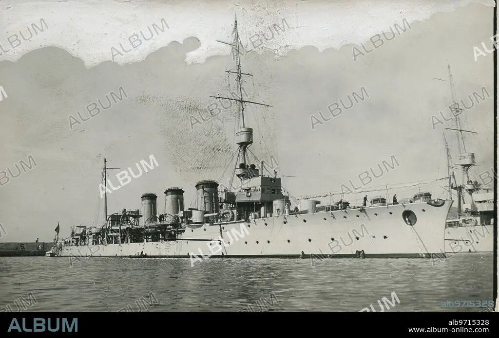 Cartagena, 1925 (CA.). El crucero de la Armada Española «Blas de Lezo», en el puerto de Cartagena.