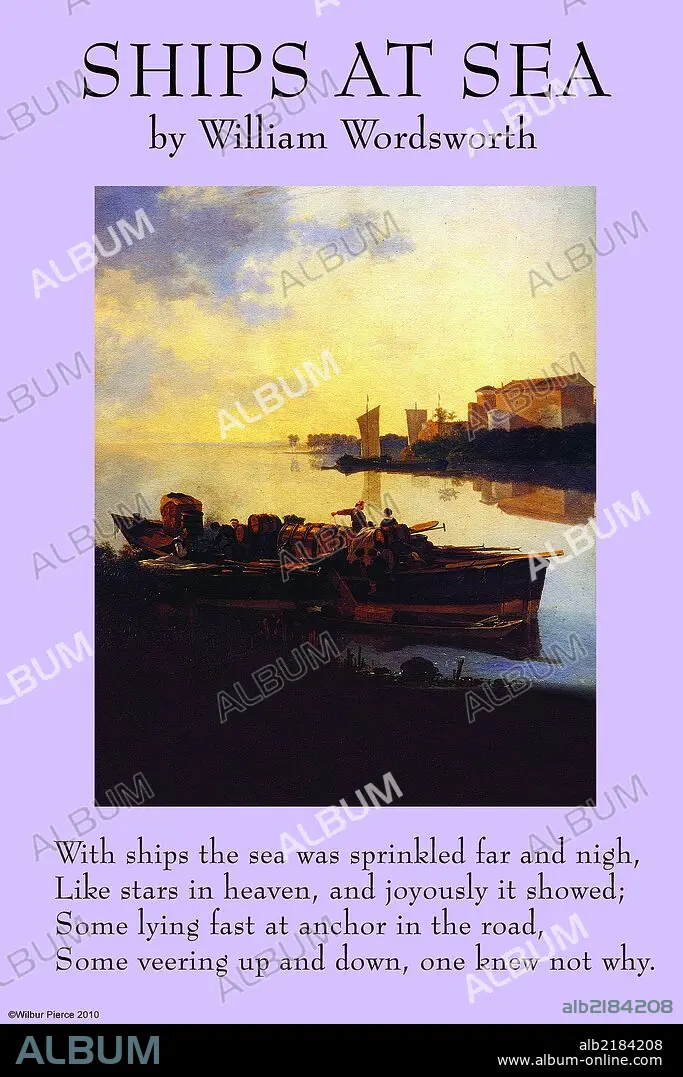 William Wordsworth 1770 –1850 was a major English Romantic poet who, with Samuel Taylor Coleridge, helped to launch the Romantic Age in English literature with the 1798 joint publication Lyrical Ballads. Wordsworth's magnum opus is generally considered to be The Prelude, a semiautobiographical poem of his early years which he revised and expanded a number of times. It was posthumously titled and published, prior to which it was generally known as the poem "to Coleridge." Wordsworth was Britain's Poet Laureate from 1843 until his death in 1850. Illustrated by "Barge on the River at Sunset, Amsterdam" Adam Pijnacker