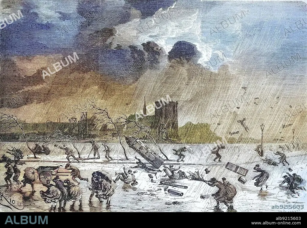 The Hurricane of 8 March 1869 in Paris, France, Historical, digitally restored reproduction of an original 19th century painting, exact original date not known, Europe.