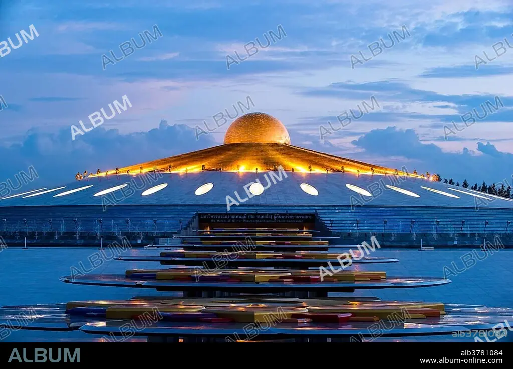 Phra Mongkol Thepmuni Memorial Hall, Golden dome of Phramonkolthepmuni meditation hall, spaceship, UFO, Khlong Luang District, Pathum Thani, Bangkok, Thailand, Asia *** IMPORTANT: This image may not be used in a negative connection with the Dhammakaya Temple ***.