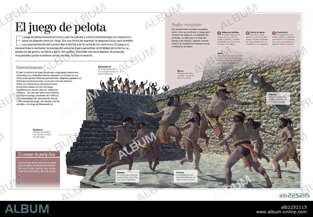 Infografía del juego de pelota mesoamericano, denominado pok-ta-pok por los mayas.
