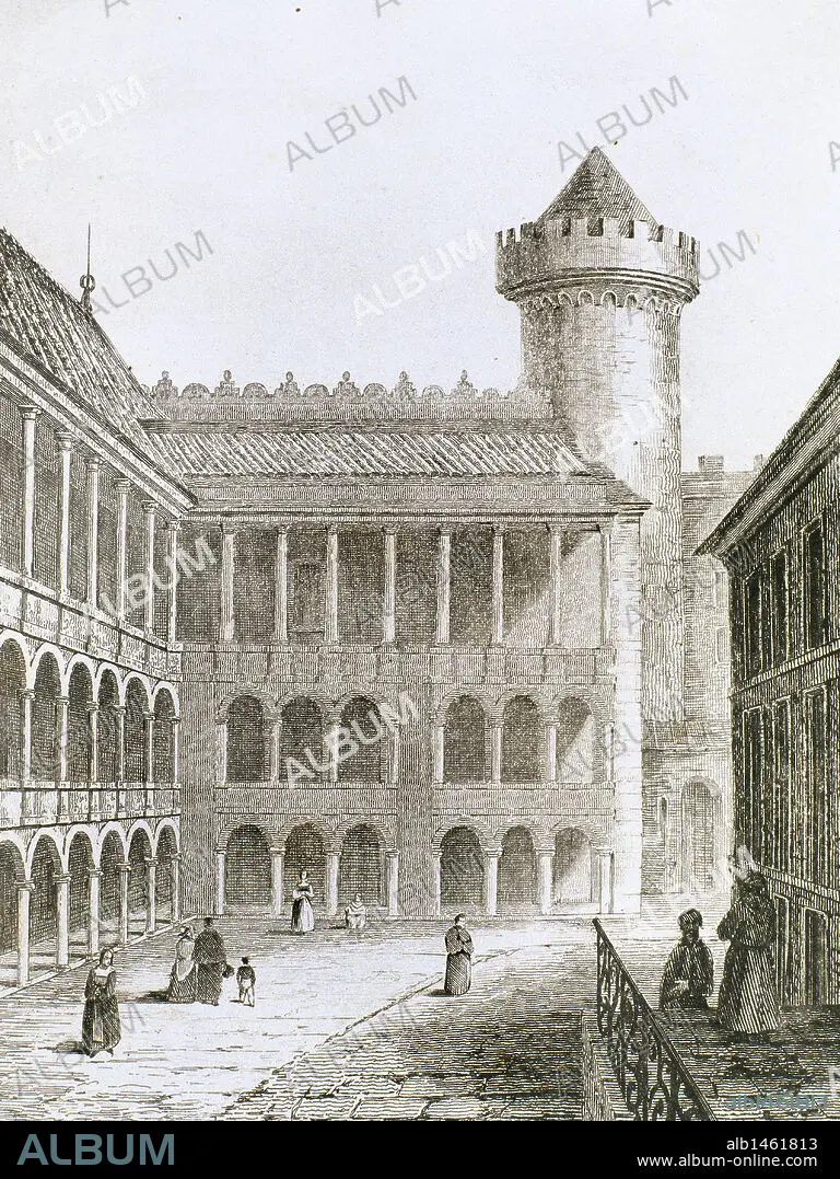 POLONIA. PALACIO REAL DE CRACOVIA realizado en el siglo XIV por el mandato de Casimiro el Grande. Grabado del siglo XIX.
