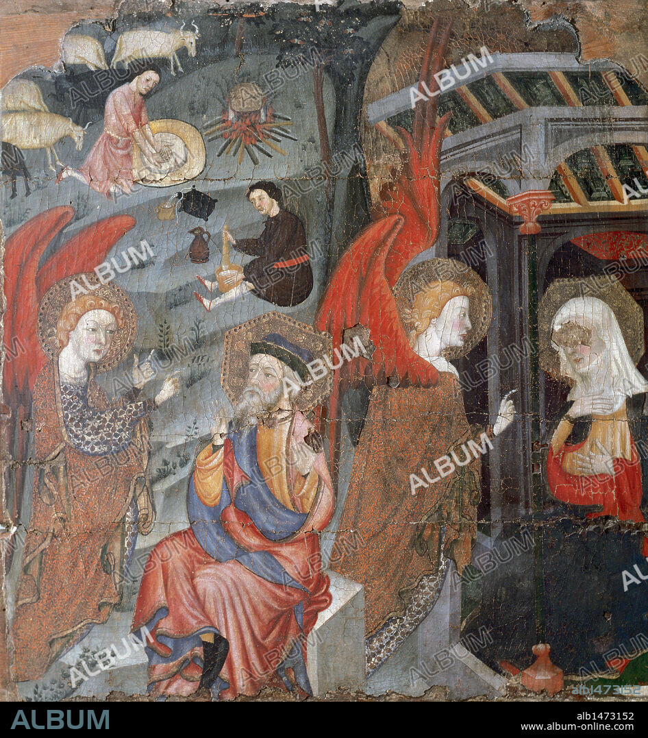 MAESTRO DE TORÀ. ARTE GOTICO. ESPAÑA. S. XIV. Gótico Lineal o Franco-gótico. Escuela catalana. MAESTRO DE TORA. ESCENA DE LA ANUNCIACION DE LA VIRGEN". Compartimento lateral, tabla de un retablo dedicado a la Virgen. Pintura sobre tabla. Museo Nacional de Arte de Cataluña. Barcelona. Cataluña.