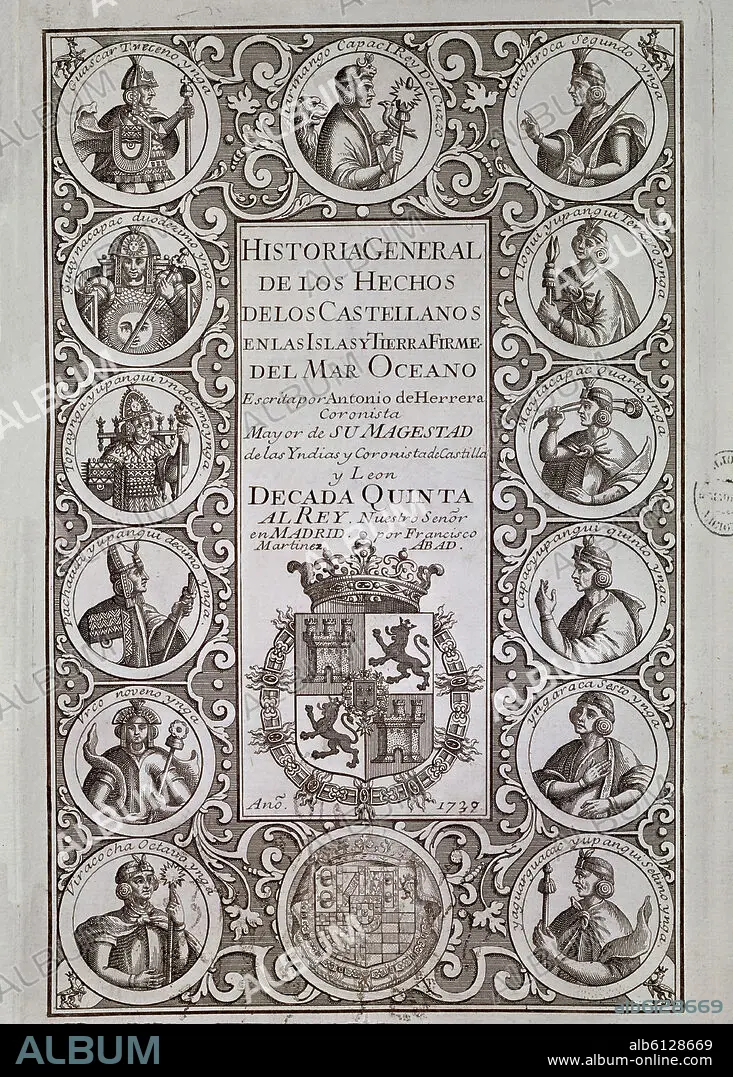 ANTONIO HERRERA Y TORDESILLAS. HISTORIA GENERAL DE LOS HECHOS CASTELLANOS EN ISLAS Y TIERRA FIRME DEL MAR OCEANO - DECADA QUINTA-MADRID - 1739