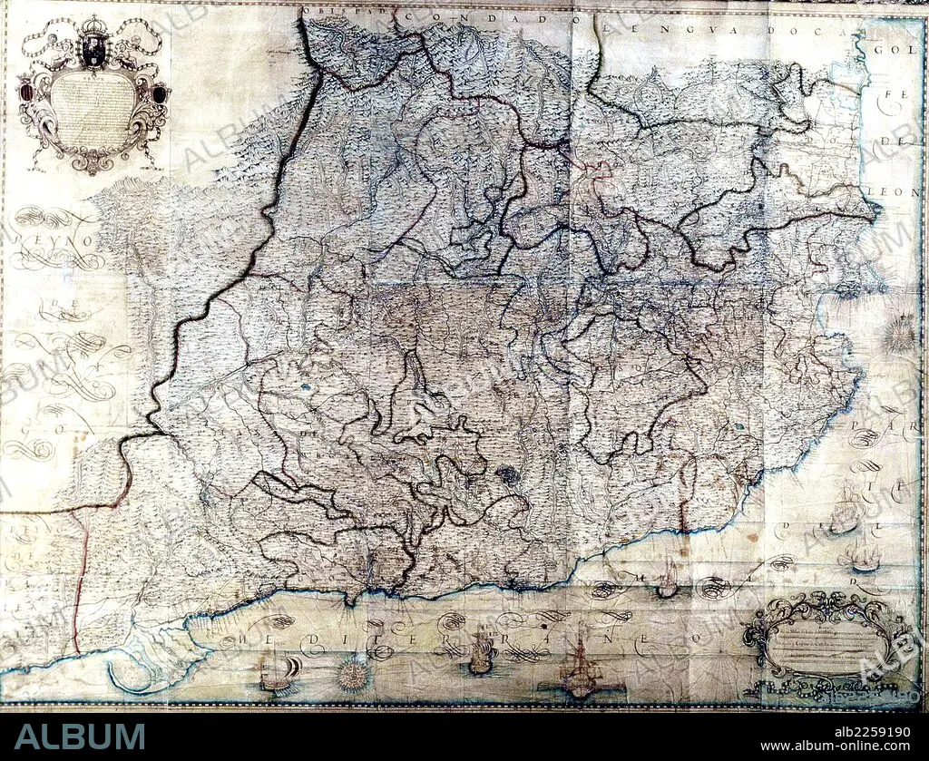 CARTOGRAFIA. MAPA DEL PRINCIPADO DE CATALUÑA Y DE LOS CONDADOS DE ROSELLON Y CERDEÑA, REALIZADO POR AMBROSIO BORSANO. REINADO DE CARLOSII ,1665-1700.