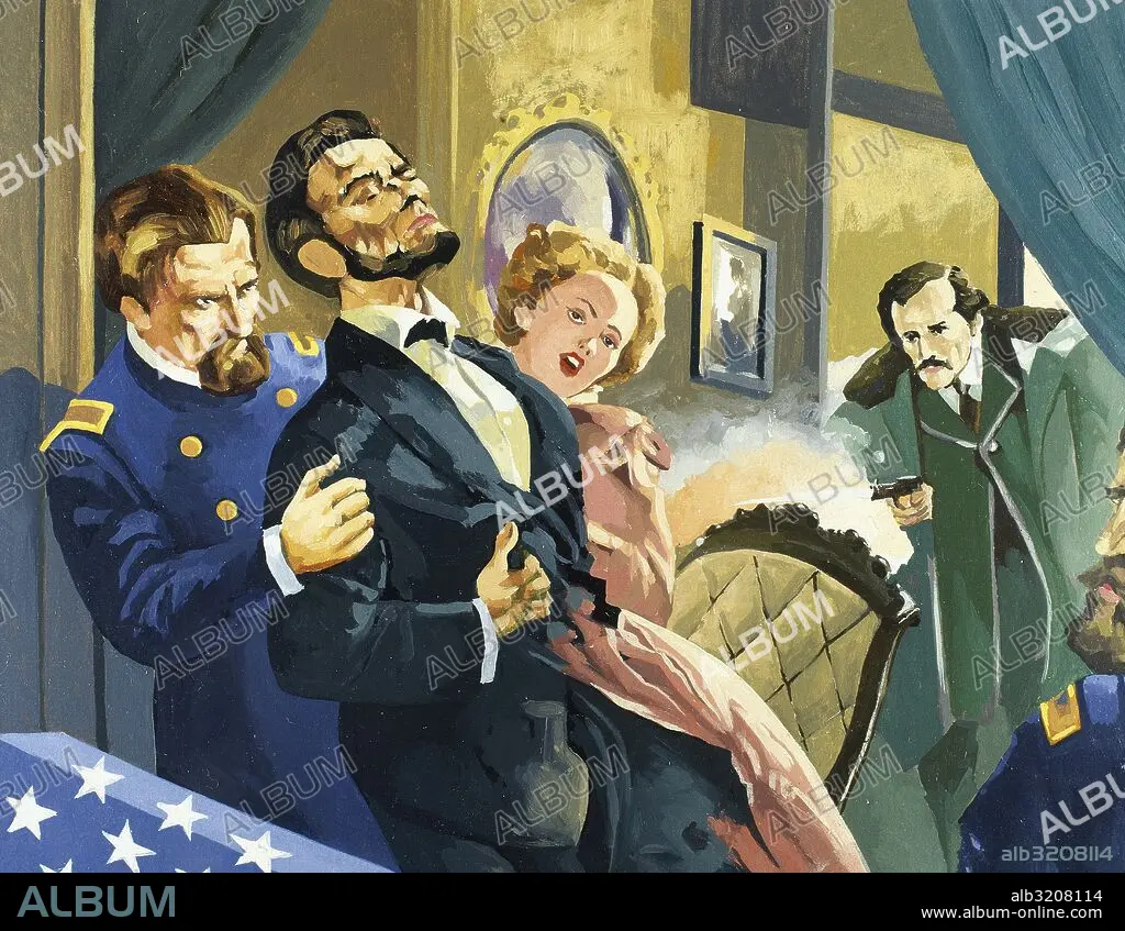 Descripción: LINCOLN, Abraham (cerca de Hodgenville, 1809-Washington, 1865). Político estadounidense. Elegido presidente en 1860, su elección desencadenó la secesión de los estados del Sur, por ser partidario de la no expansión de la esclavitud. En el año 1864 fue asesinado. ASESINATO DE LINCOLN POR EL EXTREMISTA SUDISTA JOHN WILKES BOOTH, EL 14 DE ABRIL DE 1865. Acuarela.