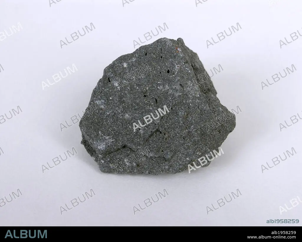 Descripción: BASALTO. Roca efusiva, la más difundida sobre la corteza terrestre y la más abundante, probablemente, en sentido absoluto. Compuesta por una plagioclasa labradorítico-bytownítica, piroxenos y olivino más o menos abundante.