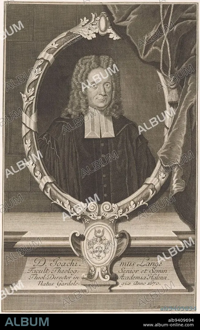 Portrait of Joachim Lange, Johann Martin Bernigeroth, 1743, print maker: Johann Martin Bernigeroth, (mentioned on object), Leipzig, 1743, paper, engraving, h 288 mm × w 181 mm.